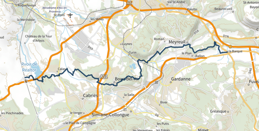 L’intérêt principal de la randonnée se situe dans cette alternance entre urbanisme et forêts avec de très beaux spots, en particulier au niveau de Bouc Bel Air et de la chapelle « Bonne-mère », le Village dominant la vallée, où encore après en arrivant sur le Pavillon du Roi Renée où quand vous allez sur Valabre, vous longez le cours d’eau de la Luynes, dans un environnement tout au frais à l’ombre des platanes. La forte densité urbaine vous obligera cela dit parfois à passer dans des sentiers enclavés entre les maisons ou des bandes de forêt isolées entre deux grillages, notamment au début vers Calas et dans le bois de Boulard*.