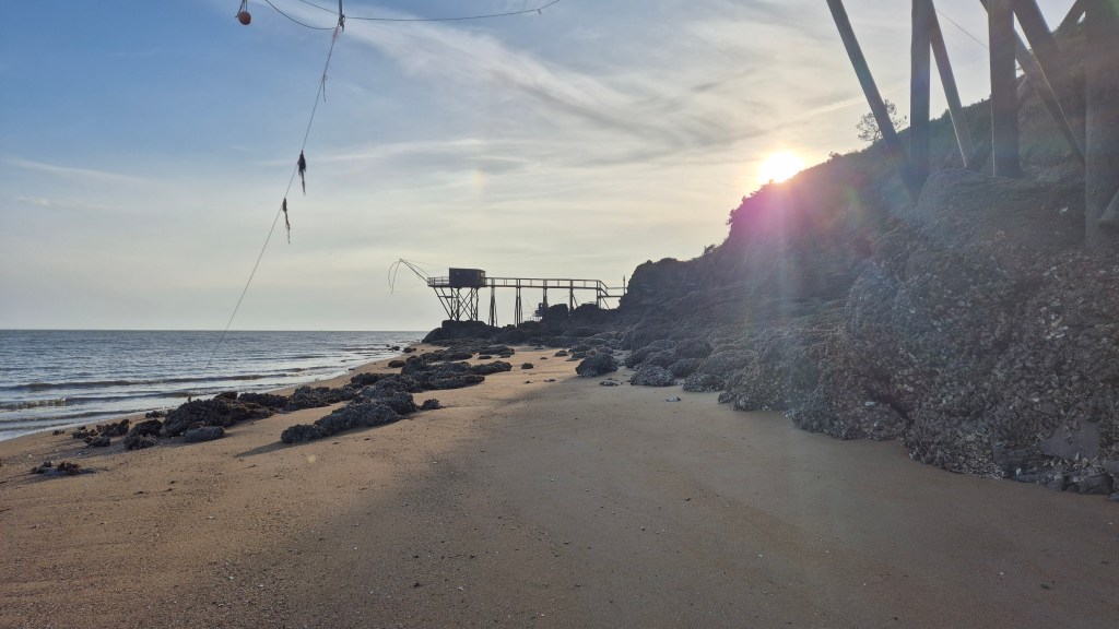 C’est une randonnéee très accessible dans tous les cas réalisable en 2 jours avec un petit arrêt à Pornic qui reste un village côtier plutôt sympathique, le gros plus est comme je l’ai qu’à marrée basse on peut faire quasi tout le trajet sur le long de la côte et donc si on calcule pas mal pouvoir arriver sur Tharon plage via la plage ! Le paysage y est alors plus que sublime et sur toute la côte, le trajet est parsemé de carrelets (cabane de pêche) et j’ai eu pour ma part la chance de monter dans une pour remonter le filet 😉 (à vide car je ne pouvais pas rester la nuit).